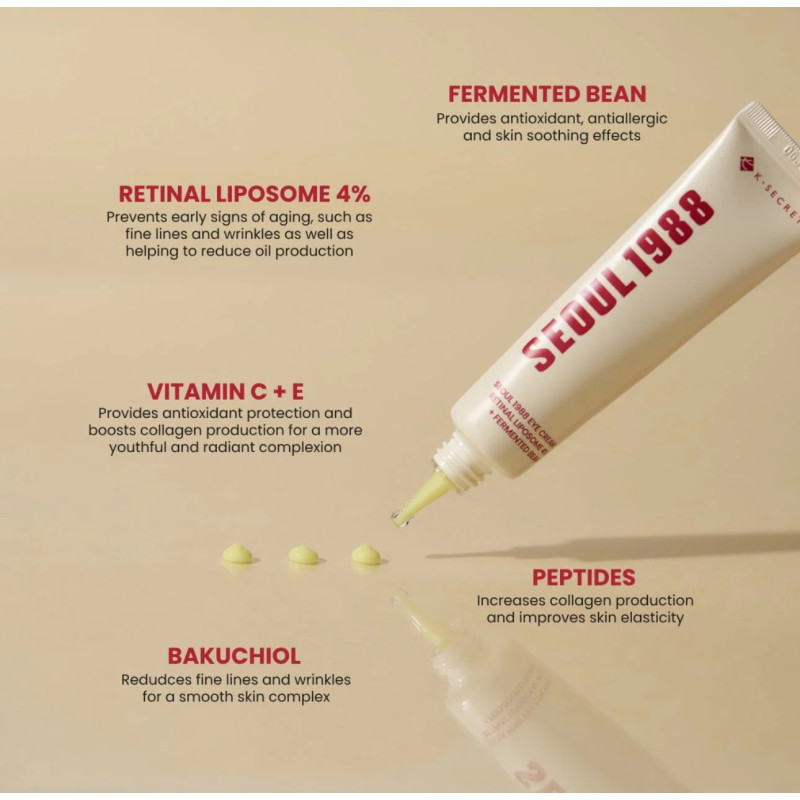 Atténuez les poches et les rides du contour des yeux grâce à cette crème puissante, formulée avec 4% de rétinal liposomé et de l'extrait de ferment de soja.
